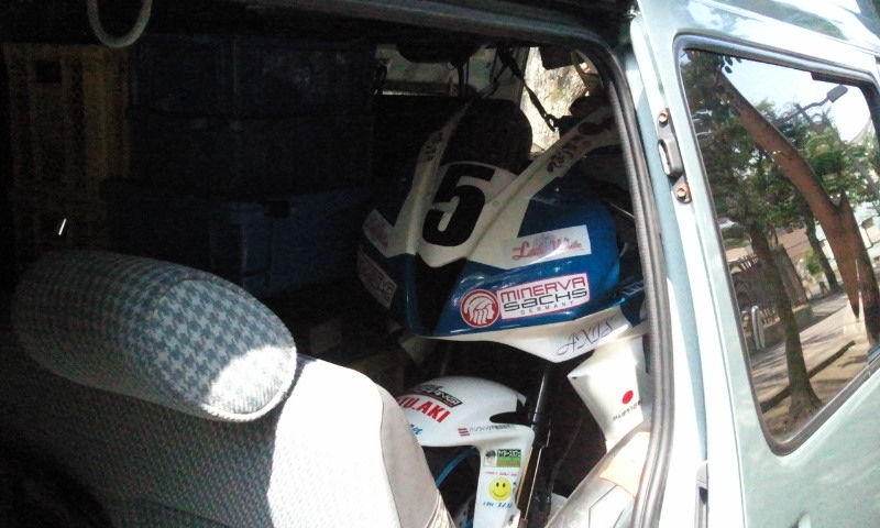 昨日、ダルさんと上田さんが頑張ってくださったおかげで今日はそんなにヘビーな作業もなくテストの荷物を積んで一件用事を済ませ一時解散となりました。感謝です!!