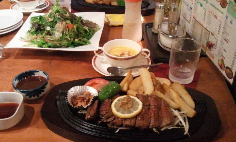 昨日はレース後に毎年岡山大会の時にはお世話になっている明日香加古川店さんに応援のお礼とレースの報告がてらおいしいお食事を頂いてきました。柔らかいステーキを目の前に食べる事にはうるさい岩崎さんをうならせ、ダルさんと共におなかパンパンになり東京へ向かいました。