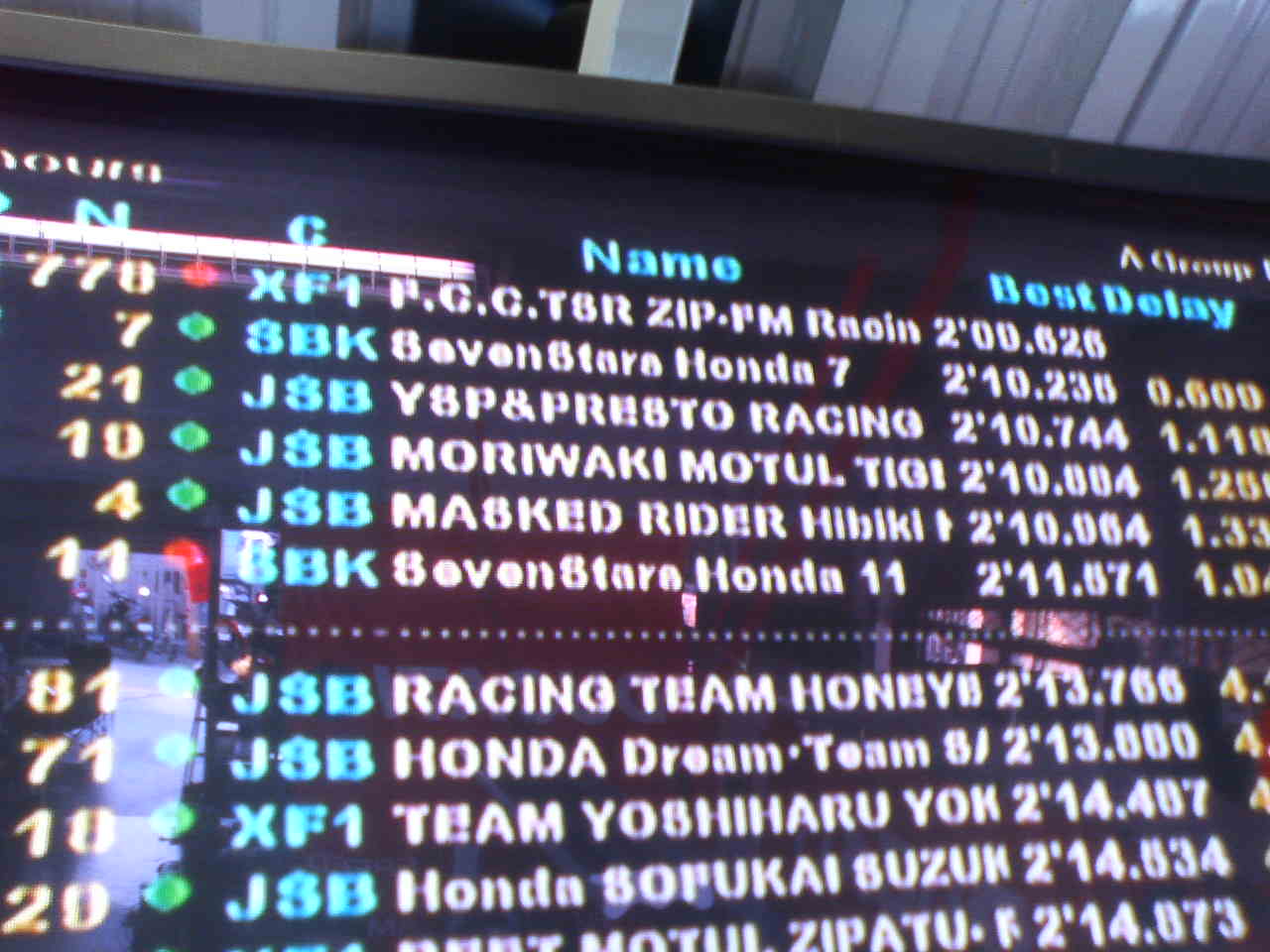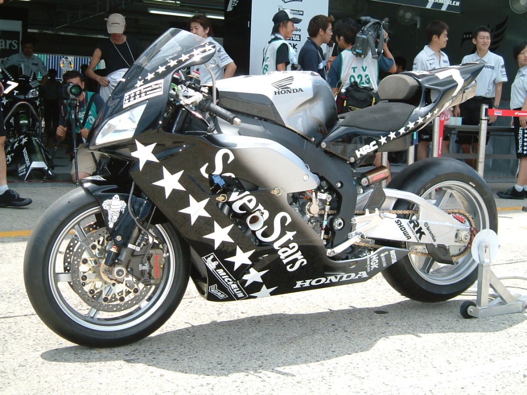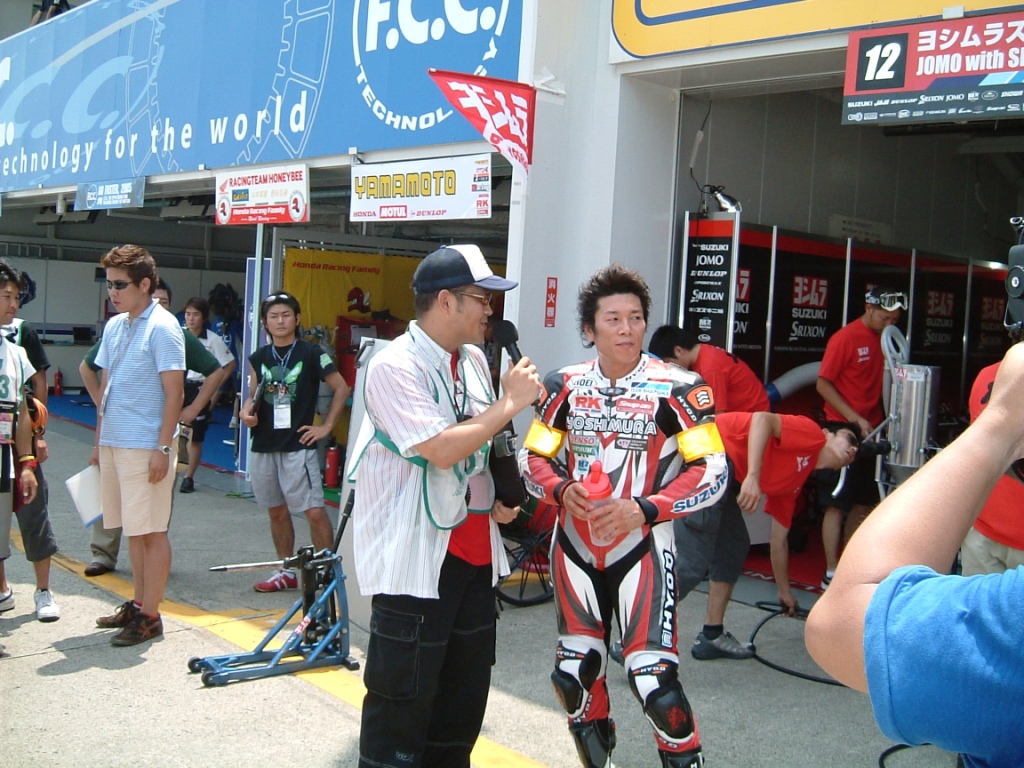 まずは、今回優勝のセブンスターホンダ7宇川選手、清成選手です、土曜日まではヨシムラ、TSR、仮面ライダーと、プライベータに押され気味でしたが、最後にはやっぱりワークスだな、、と感じました、とにかく、僕が「ここで勝負あったな」、と思ったのは清成選手が走行した「最初の1時間」でした、1周目からトップを走り、宇川選手に交代する頃には約25秒の差になっていました、追いすがるヨシムラ加賀山選手も付いていけたのは10周まで(その後はタイヤがたれたのか、明らかに精細を欠き、どんどんペースを落として10秒離していたTSR辻村さんに追いつかれてしまいました)。