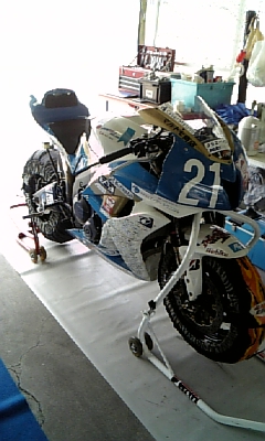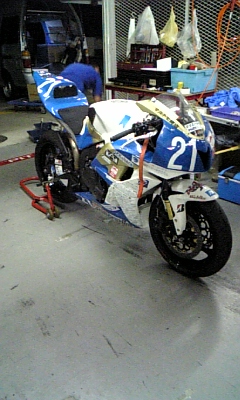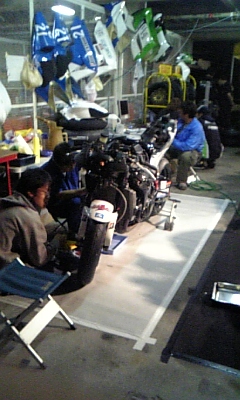 鈴鹿サーキットでは、ほとんどのチームが帰り支度をしていますが僕たちのチームは今回の敗因が何処あったかバイクをバラバラにして原因を究明しています。